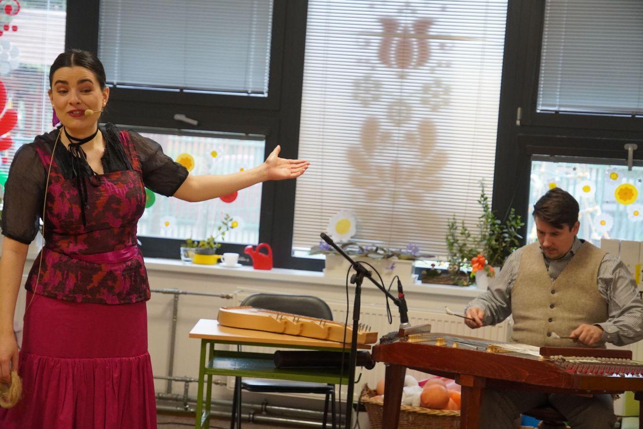 Az interaktív előadás során a gyerekek nemcsak tanultak, hanem szerepeltek is. Utólag – fél füllel – hallottam, ahogyan az egyes szerepeket bevállalók kicsiny társai dicsérték egymást, mondván, milyen jó kis banyák voltak! S hogy mit tanultak? Magyar tájegységeket a Kárpát-medencében. Népviseleteket: színeket és formákat. Népi mesterségeket. Hangutánzást. Zenei hangok felismerését. Ritmust és az arra való mozdulatokat. És persze sok-sok kedvességet, emberi jó tulajdonságot.