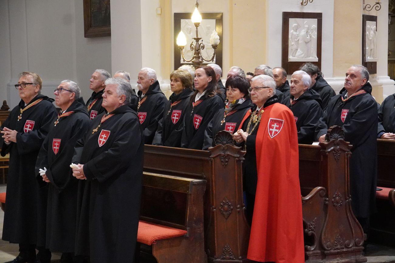 Meglepő és egyben szemet kápráztató látványban volt része mindazoknak, akik azon a péntek délutánon Komárom belvárosában, a Nádor utcán sétáltak. Azt már megszokhatták, hogy a katolikus plébánia kapualjából Kiss Róbert kanonok úr vagy Lépes Lóránt atya, esetleg a csicsói rend szerzetesei lépnek elő, most azonban egy sokkal színesebb társaság várakozott a jelre, melyet megkapva megindultak a méltán híres Nemzetközi Szent György Lovagrend novíciusai, lovagjai és dámái: zászlajukat követve bevonultak a Szent András Bazilikába.