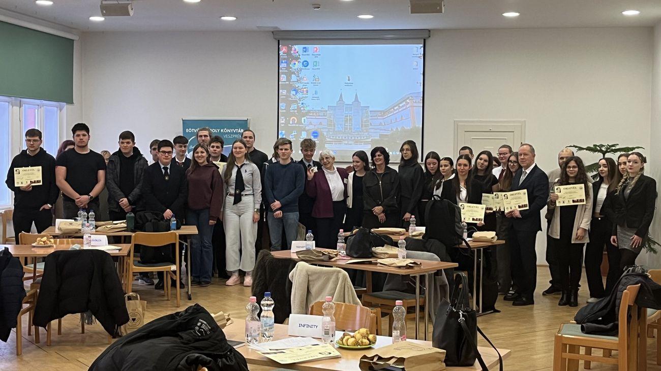 A verseny regionális elődöntőjére 2026. február 9-én, hétfőn, a veszprémi Eötvös Károly Megyei Könyvtárban került sor győri, százhalombattai, bajai, budapesti, érdi, ajkai és természetesen veszprémi csapatokkal, köztük a mi csapatunk volt az egyetlen határon túli trió. Nagy örömünkre a kisfilm, amely egy roma diák kirekesztettségének történetét mutatta be, a második legnépszerűbb volt a versenyzők körében, a vetélkedőre elkészített Facebook-oldal szintén a második legjobbnak bizonyult a zsűri értékelése szerint. Ez mind szép és jó volt, hiszen ezek a tevékenységek heteken keresztül zajlottak az iskola falain belül, aktivitásokkal, de senki sem számított arra, hogy az évszak népszerű betegségei áthúzzák csapatunk terveit. Sajnos a verseny napján egyik versenyzőnket hirtelen pótolnunk kellett, és ez rányomta a bélyegét csapatunk teljesítményére.