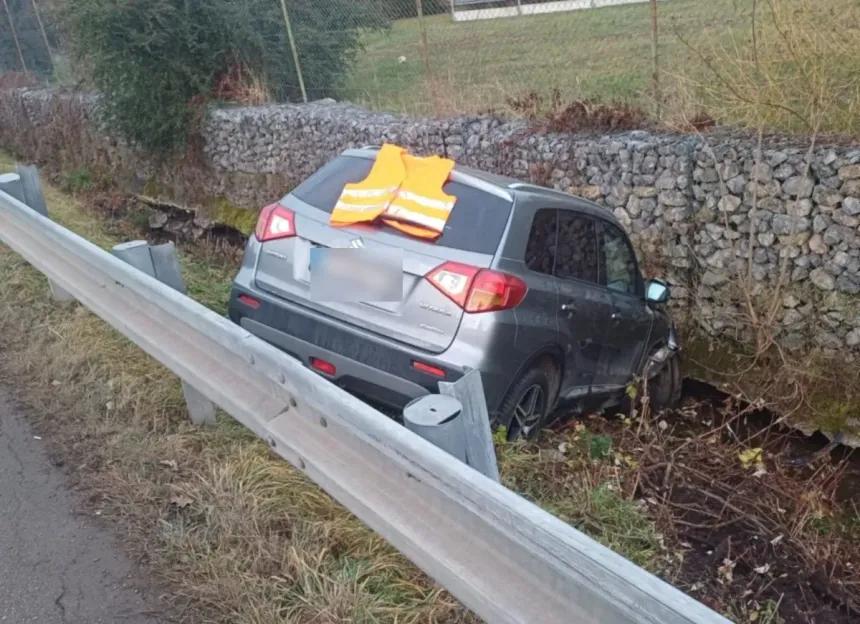 Szokatlan közúti incidens borzolta a kedélyeket Zsolnatarnóban, amikor egy nő Suzuki Vitarájával letért az útról és egy patak melletti falnak csapódott.